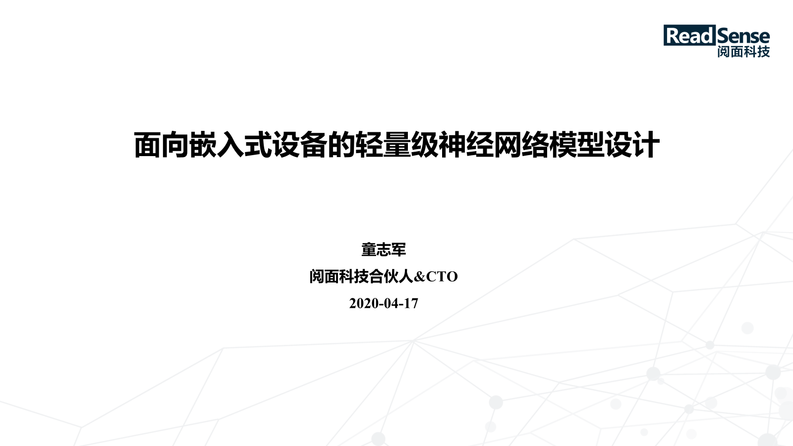 4月17日,閱面科技合伙人&CTO童志軍在智東西公開課進(jìn)行了嵌入式AI合輯第四講的直播講解,主題為《面向嵌入式設(shè)備的輕量級(jí)神經(jīng)網(wǎng)絡(luò)模型設(shè)計(jì)》。