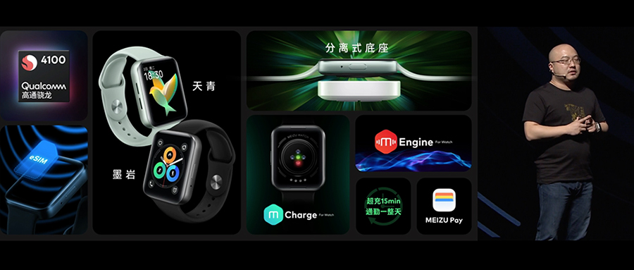 其中,MEIZU Watch搭載Flyme for Watch智能穿戴系統(tǒng),采用高通驍龍4100處理器,功耗比上一代降低25%,能夠脫離手機獨立完成接聽電話、發(fā)送短信和上網(wǎng)等操作。