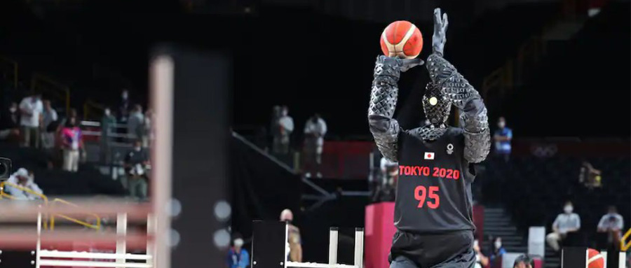 上周末,籃球迷們正在觀看美國隊與法國隊在奧運會賽場上的比賽,當中場休息時一個高約兩米的怪物走到了球場中間,撿起一顆籃球并移動手臂,投出一個完美的三分球。這一舉動驚呆了所有正在觀看比賽的人。