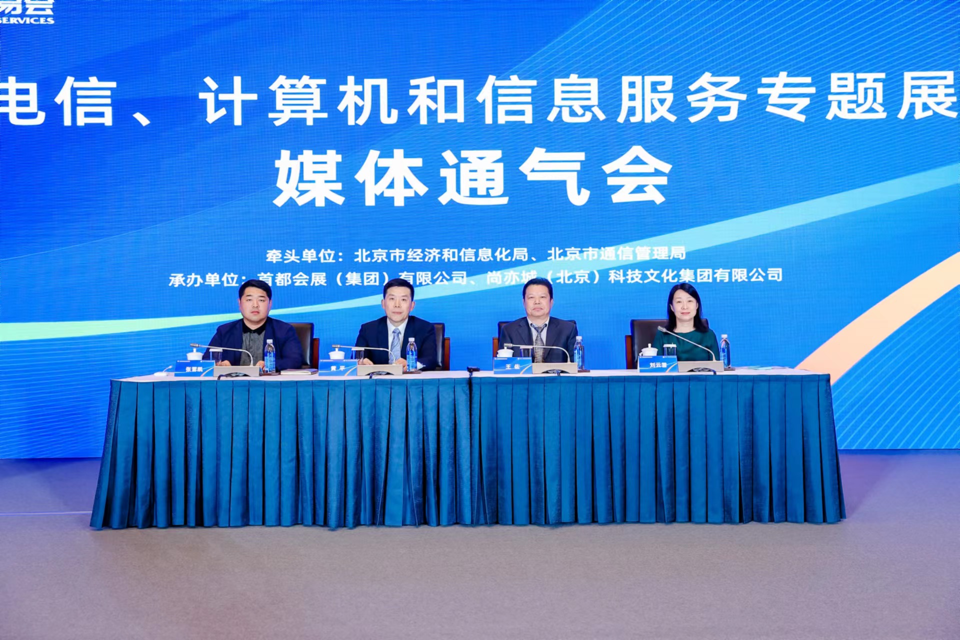 北京市經(jīng)濟(jì)和信息化局二級(jí)巡視員王佐、北京市通信管理局黨組成員、副局長黃平出席并致辭。首都會(huì)展(集團(tuán))有限公司總經(jīng)理周一煒、尚亦城(北京)科技文化集團(tuán)有限公司副總經(jīng)理朱天博分別介紹通信和數(shù)字技術(shù)主題館、元宇宙前沿技術(shù)創(chuàng)新應(yīng)用體驗(yàn)中心相關(guān)情況。北京市中小企業(yè)服務(wù)中心副主任林澤、北京北廣電子集團(tuán)有限責(zé)任公司副總經(jīng)理杜萌萌,以及來自中國電信、中國移動(dòng)、中國聯(lián)通、中國廣電、尚聞科技等參展企業(yè)代表和媒體記者參加了此次通氣會(huì)。通氣會(huì)由首都會(huì)展(集團(tuán))有限公司服貿(mào)會(huì)中心負(fù)責(zé)人劉云雪主持。