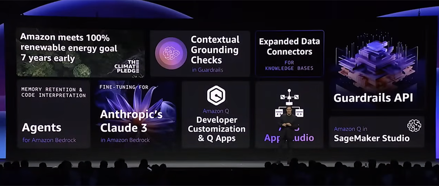 新發(fā)布包括Amazon Bedrock及Amazon Q的多項更新。其中,Amazon Bedrock更新了微調(diào)Anthropic Claude 3 Haiku、Guardrails(安全防護)和Agents(智能體)等功能;Amazon Q Apps讓人人都能用自然語言指令在幾秒鐘內(nèi)創(chuàng)建生成式AI應(yīng)用;Amazon Q Developer集成到Amazon SageMaker Studio中并正式可用,使得機器學(xué)習(xí)模型的開發(fā)過程更加便捷。
