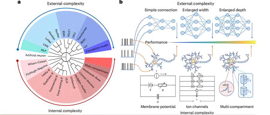 中國(guó)類腦計(jì)算研究登Nature子刊:解鎖AI性能提升新路徑,中科院清華北大聯(lián)合成果▲不同內(nèi)部和外部復(fù)雜性的典型模型、神經(jīng)元和網(wǎng)絡(luò)
