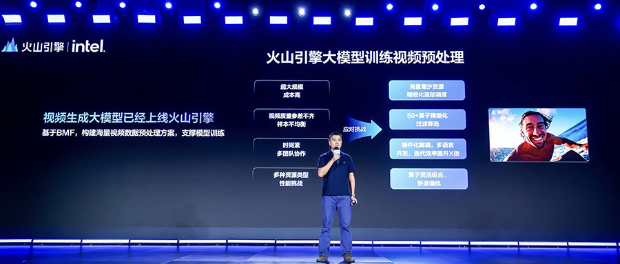 借助英特爾CPU等資源,火山引擎大模型訓(xùn)練視頻預(yù)處理方案依托于自研多媒體處理框架BMF,能有效應(yīng)對(duì)模型訓(xùn)練的算力成本挑戰(zhàn)。該方案還在算法和工程方面進(jìn)行了調(diào)優(yōu),可以對(duì)海量視頻數(shù)據(jù)高質(zhì)量預(yù)處理,短時(shí)間內(nèi)實(shí)現(xiàn)處理鏈路的高效協(xié)同,提高模型訓(xùn)練效率。