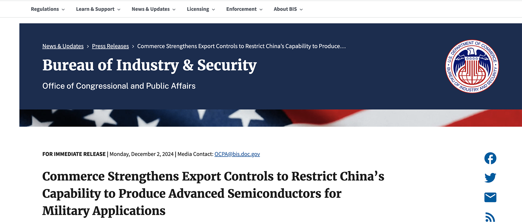 美國商務(wù)部升級(jí)對(duì)華出口管制!涉及24種制造設(shè)備、3種軟件工具、140家公司