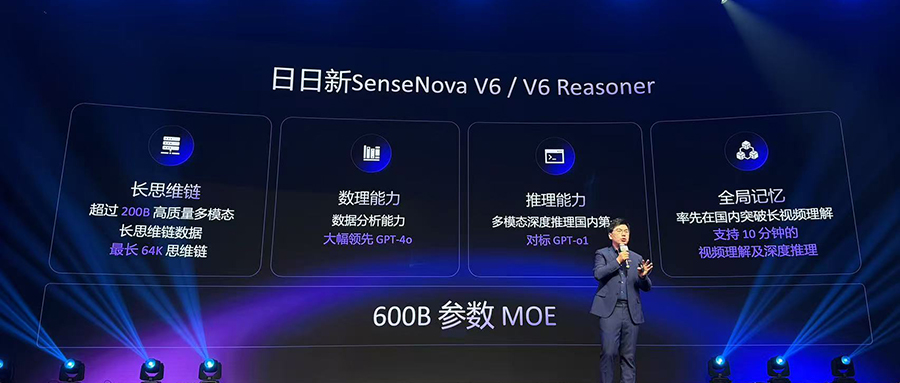 新發(fā)布的「日日新SenseNova V6」原生多模態(tài)通用大模型,采用混合專家架構(gòu)(MoE),擁有6000億參數(shù),做到三合一:多模態(tài)長(zhǎng)思維鏈+多模態(tài)強(qiáng)化學(xué)習(xí)+多模態(tài)全局記憶。