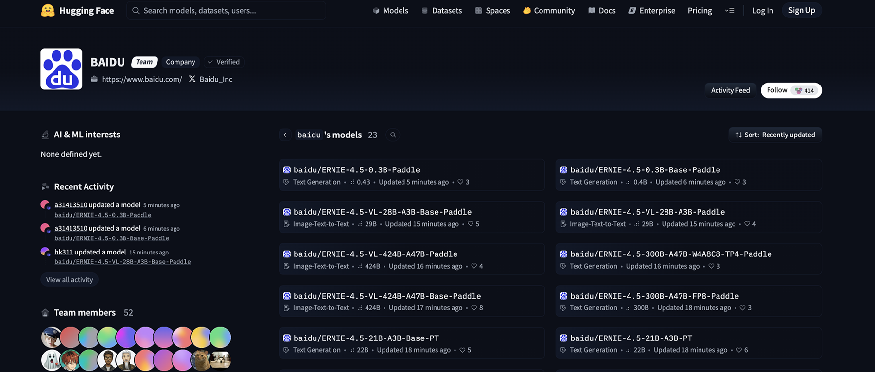 Hugging Face:https://huggingface.co/baidu/models