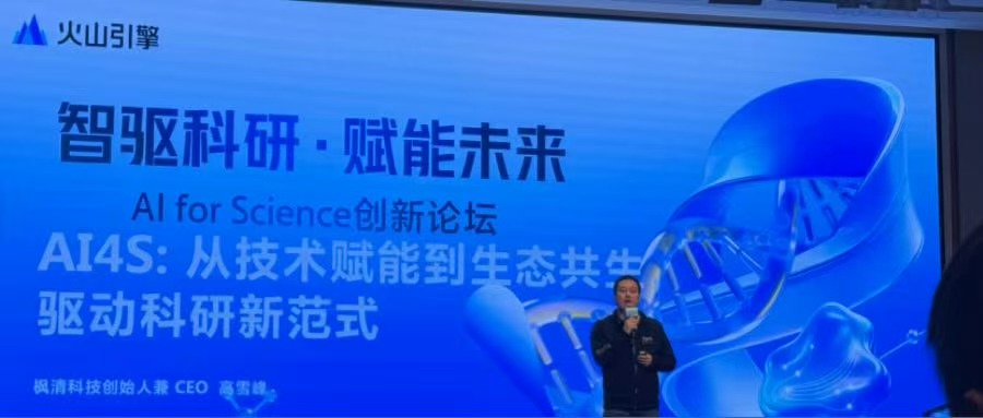 會(huì)上,楓清科技創(chuàng)始人兼CEO高雪峰發(fā)表主題演講,分享了楓清科技如何通過(guò)科研垂域模型訓(xùn)練與蒸餾,通用科研智能體以及科研場(chǎng)景智能體的開(kāi)發(fā),實(shí)現(xiàn)AI+科研實(shí)踐落地。