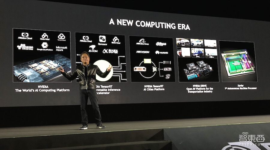 本次演講的幾大亮點(diǎn)如下:推出新版TensorRT 3深度學(xué)習(xí)應(yīng)用平臺(tái);推出世界第一款機(jī)器人芯片XAVIER;宣布阿里、百度、騰訊“三朵云”數(shù)據(jù)中心都開始使用Tesla V100新款GPU;與??低暫献鞔蛟霢I城市;宣布與京東在倉儲(chǔ)機(jī)器人與送貨無人機(jī)方面的合作等。